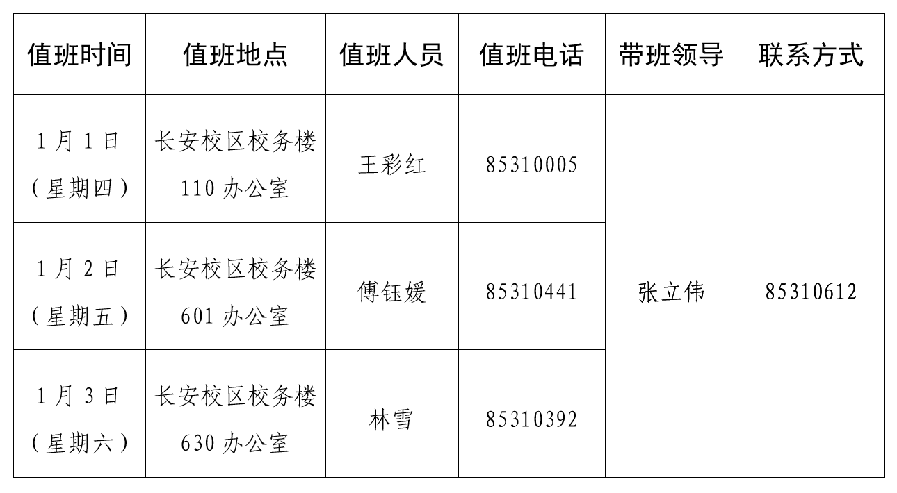 学科建设与发展规划处(“双一流”建设办公室)2025年元旦值班安排